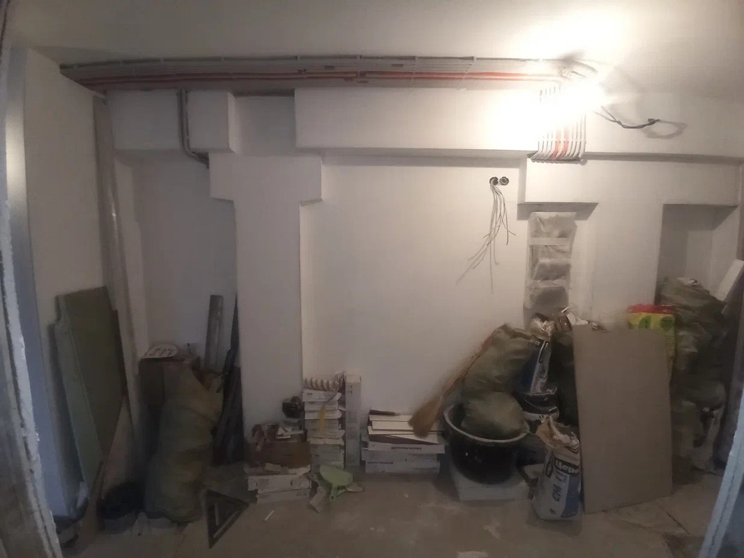Фото до конечно стыдно, наверное выставлять, но для контраста до и после. Там у нас столько всего хранится и я прохожу туда в полный рост 😅Там, не поверите, огромный морозильный ларь, стеллажи с химией, пылесос на зарядке, тряпки, ведра, корзина с бельем. Куча всего. До и после.
