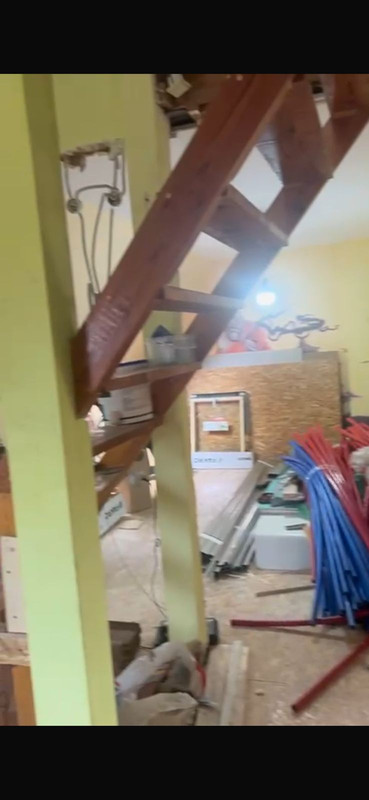 «А придется». Когда будем делать кухню, то закроем, загородим кухню полностью гипсокартоном на время работ. Внизу у нас готово почти место для крошечной кухни.
