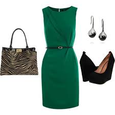 Это холодный тон зеленого, к нему надо что-то тоже холодное, не контрастное, и не светлее тона платья.