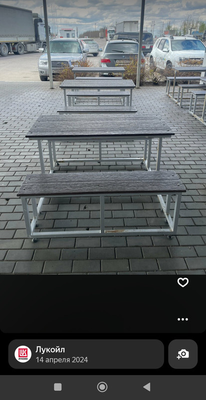 Это Лукойл. За зданием АЗС есть огромная крытая терраса со столиками (на фото только маленький сектор этой террасы), а за ней видна парковка, уходящая к горизонту.