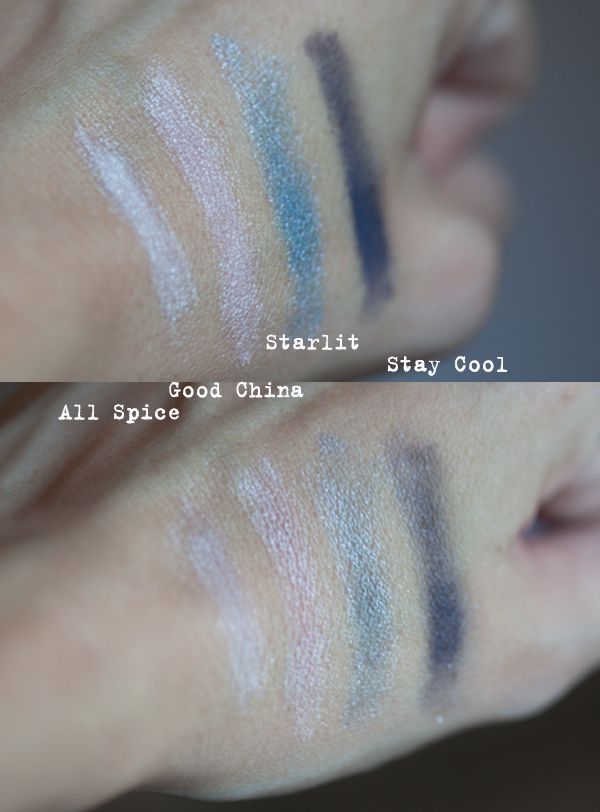 all spice очень натуральный, два месяца уже пользуюсь, stay cool если взять чуть чуть и хорошо растушивать хорошо, то слегка серенький.. если взять много, то пойдет для подводки глаз, хотя для подводки у меня смоки айз их...