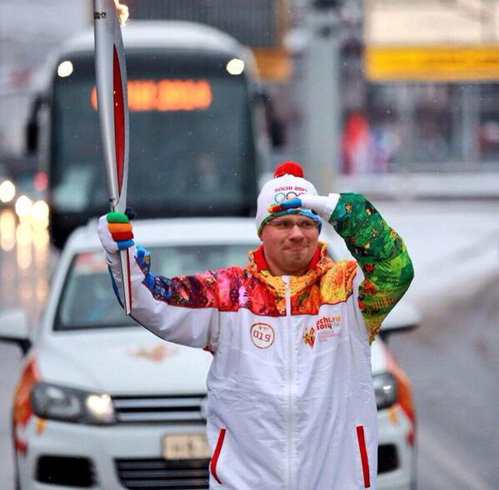 Вот так в Орле факел несли все, кому не лень. А в итоге еще и домой забрали. На фото коллега знакомой, который принес факел домой. Как они с этим факел только не фотографировались.