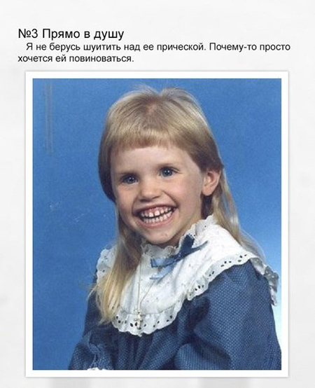 Не смешно мне, потому как акцент не на прическах, а именно на каком-то идиотском виде детей в целом. Или детей собрали со специфической внешностью или фотки такие, мож подделали.
