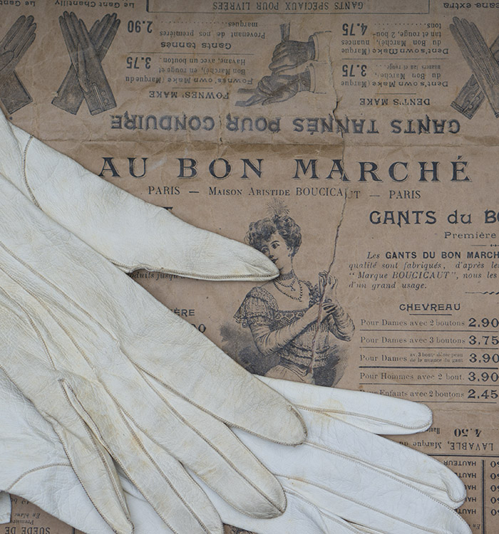 во-первых кожа ссыхается со временем, во-вторых перчатки делались изначально небольшими, а к ним прилагалась специальная растяжка, которой перчатки подгонялись под размер конкретной руки, вот как на картинке, поэтому неудивительно, что перчатки не налезли, и это вовсе не потому, что у девушек руки оказались бошьшими