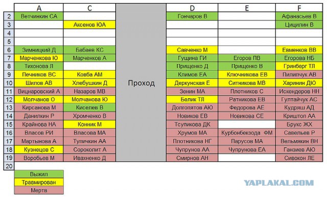— Покажите там списки, пострадавших, не пострадавших, составляйте там, всего на борту было 73 пассажира и экипаж 2 + 3