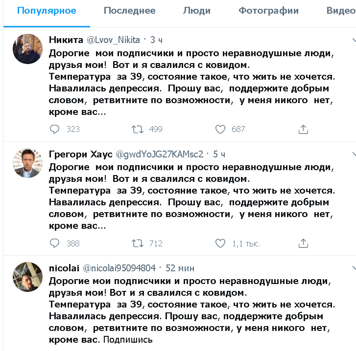 Это не раскручивают профиль, это заказ с целью формирования общественного мнения, паники и т. п. Такие вбросы с апреля идут. Наиболее запомнившийся про суп из остатков запасов, потом про сидела дома и заболела, теперь вот это. Чтобы создать видимость, что Собянин, Путин т. п. рано всех выпустили из-за парада, а народ массово болеет.
