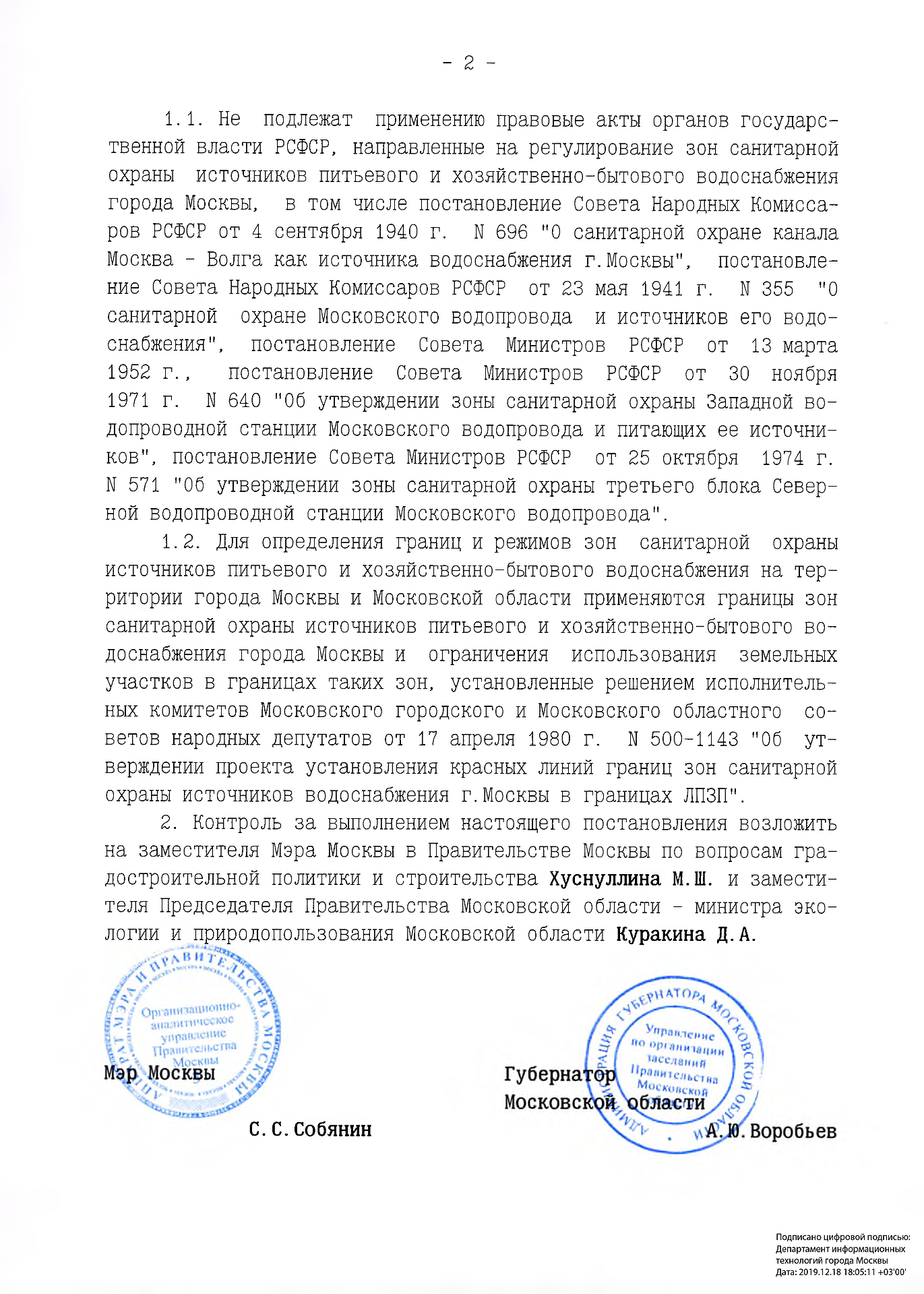 «7 декабря правительства Москвы и Московской области приняли совместное постановление о зонах санитарной охраны, которое отменяет действие всех нормативных правовых актов в этой сфере. Тем самым правительство Московской области, пишет академик Виктор Иванович Данилов-Данильян, на неопределенный срок уменьшило территорию зоны санитарной охраны московского водопровода примерно в 10 раз».