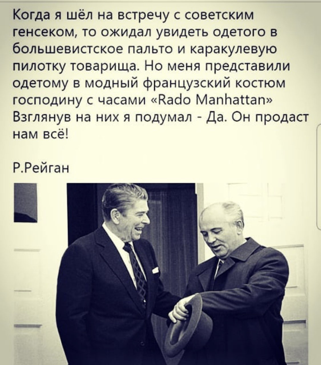 Приведите хоть один пример высказывания "западного политика", который в подобном ключе высказался про Горбачёва. Не важно действующий политик или занимавший высокие должности в период правления Горбачёва. Хоть одно реальное высказывания в прессе, интервью или книге.