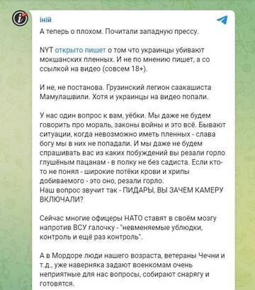 То есть неплохо бы понять, кто это разместил. Если кто-то из украинских военных типа про себя, то это одно. А если просто в сети бродит, может быть фейком и русским...