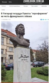 Переименование памятника Пушкину в памятник Джо Дассену в Ужгороде не помогло (если кто следил за историей), поэтому бюст поэта все же уволокли, видимо все же нашелся интеллектуал, кто смог их отличить. Осталась надпись на постаменте "Джо Дассен"