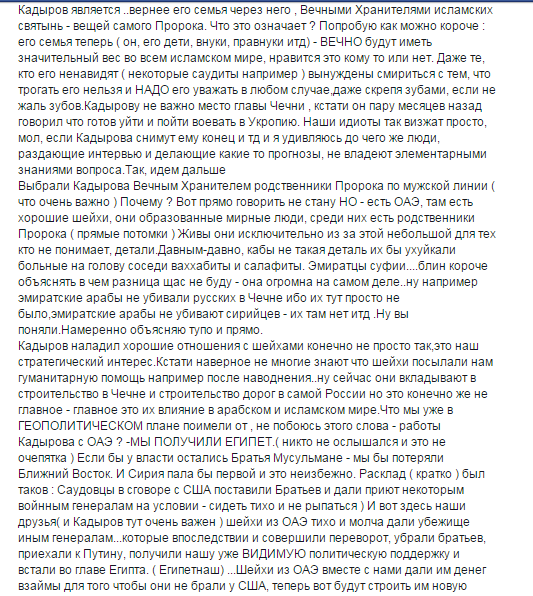 «Контроль над Югом Украины — это еще один выход в Приднестровье, где также отмечаются факты притеснения русскоязычного населения. Судя по всему, мы сейчас воюем со всем миром, как было в Великую Отечественную ***, вся Европа, весь мир против нас был. И сейчас то же самое, они никогда не любили Россию».