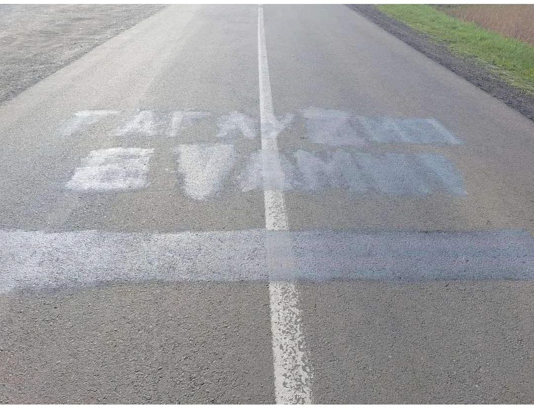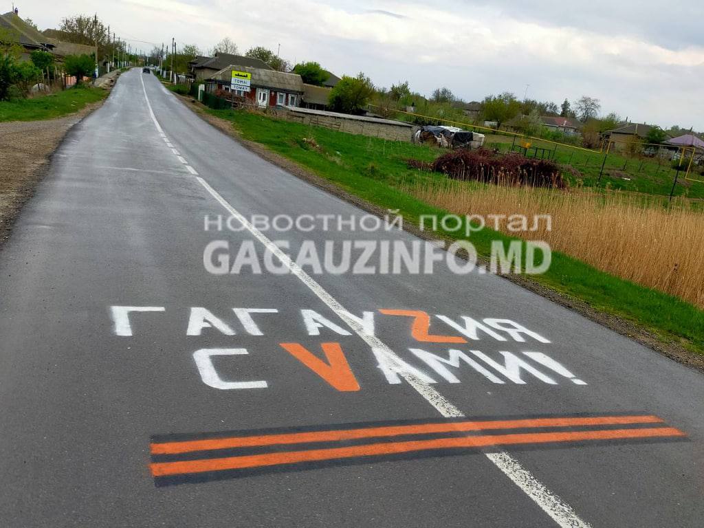 Ну и пара картинок. В Томае закрасили запрещенные в Молдавии символы, которые неизвестные нарисовали на трассе