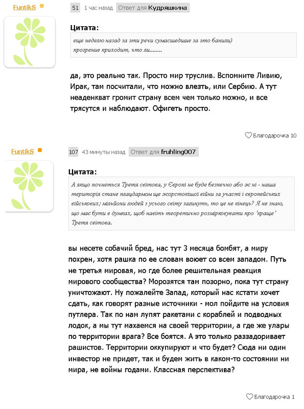 Спасибо. Я все это чувствовала в 2014 году, когда бомбили Донбасс, а мы с девчонками сидели здесь на еве и глазам и ушам своим не верили - как это возможно? укринцы украинцев уничтожают!!! И было страшно от бессилия. И что помочь не можем. И что мировое сообщество слепо и глухо.