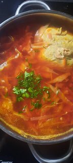 Почему без свеклы? Он на самом деле темно-красный, просто высветилось на фото :-) Нее, я люблю когда хоть какое-то мясо есть в супе.