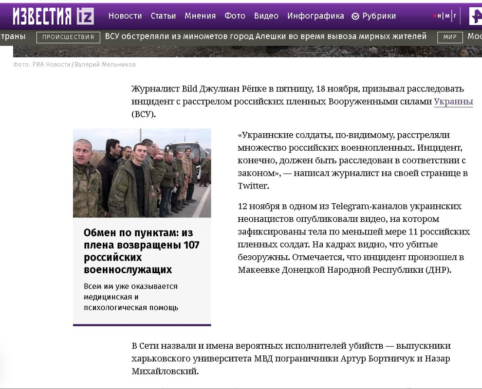 «Их тела не были выданы родственникам и планируются к использованию в постановочных сценах, якобы свидетельствующих о военных преступлениях России. 74 человека вывезены в неизвестном направлении», – передает ТАСС его слова.