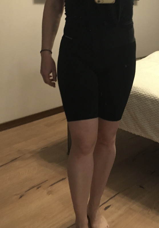 Удивило конечно. Я выше выложила фото в раздевалке в черном, у меня там вес больше вашего на 20кг, многие кстати отгадали. Но верх так не выглядит, может тип фигуры другой.