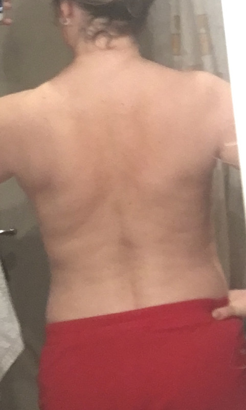 Правильно, распределение другое. Но мне выше зачем то предложили сфоткаться без утягивающей одежды чтобы рассмотреть где повисло. Я и говорю что на спине (а сравниваем мы спину) складки такие же как у дамы в весе 72-74.