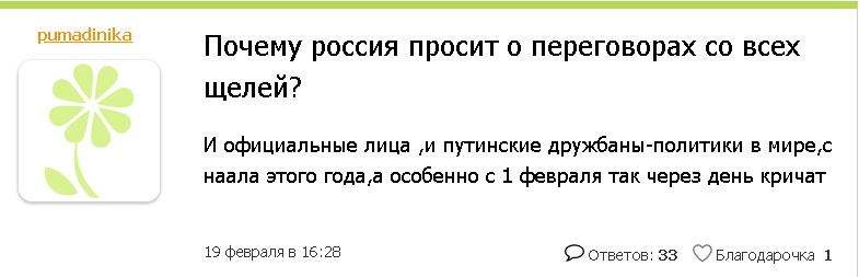 Не надо с пятого на десятое скакать, весь Кремль год назад вопил из всех утюгов, что никакой *** не будет, вспомните Захарову с ***ым с их гопническими шуточками о войне и графике отпусков. Смешно было, да. и что имеем - горы трупов и Пу, который разводит ручками "ну что они творят". Что мы творим?