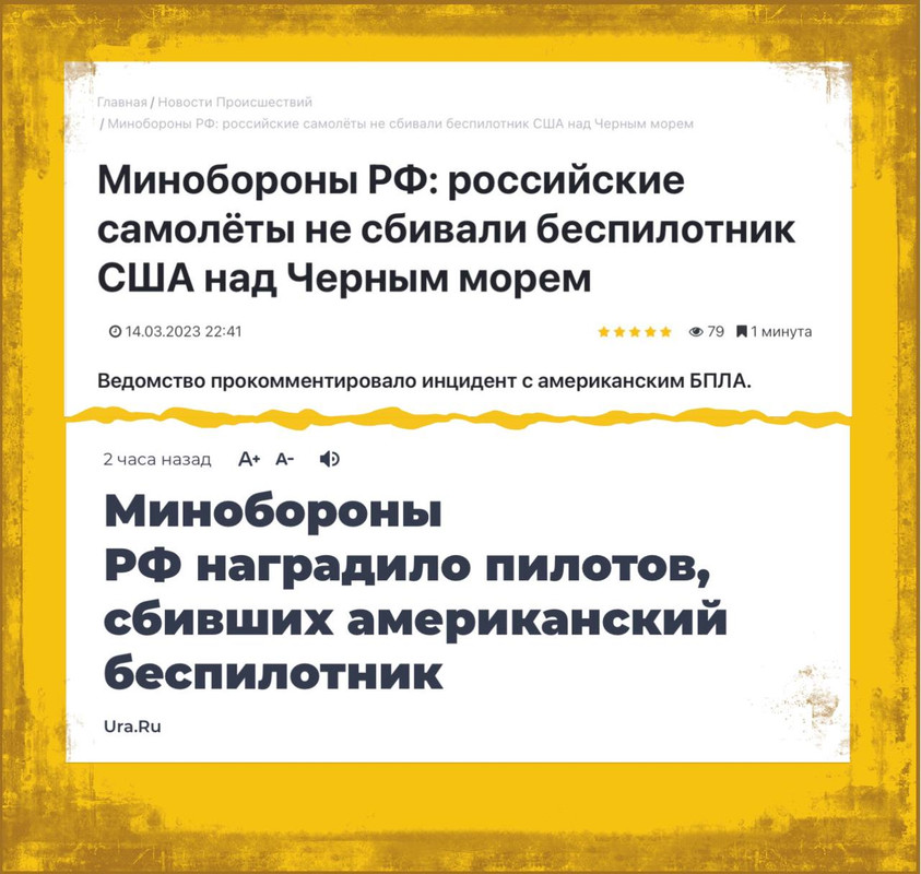 В комментариях пишут, что ВВС пытаются скрыть, как близко БПЛА подошёл к Крыму перед тем, как его перехватили российские Су-27: