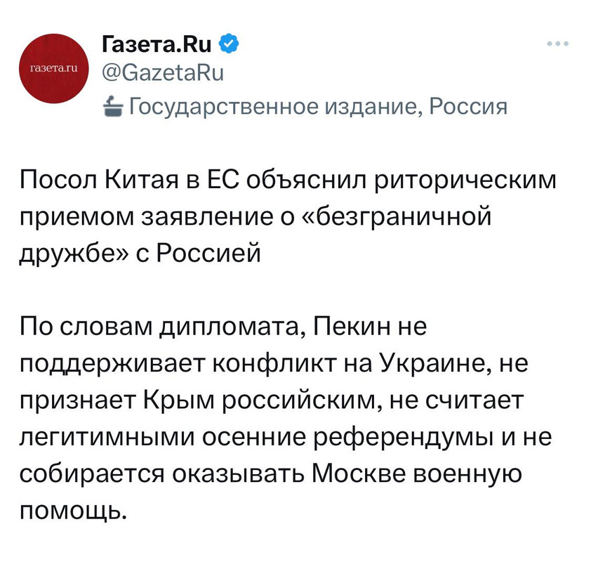 Китайцы оказались не пидорасами. Евры подставили жопы а их никто не трахнул, удивились евры...