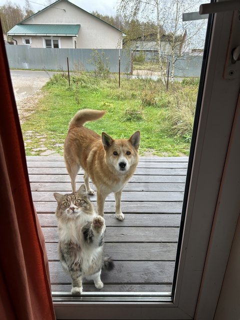 У нас есть дружественный кот (дочки моего сожителя), с которым он хочет дружить и у него это получается. Тот не всегда дружелюбен, но и не сильно агрессивный.