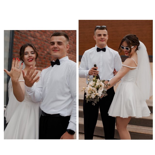 Роспись была неторжественная, быстренько сгоняли к 10:30 на мотоцикле в Загс, нам дали подписать бумажки и усе) У - удобно. Потом я эпично навернулась с подножки, полностью подтвердив золотое правило "Уронил - женись". Поржали)