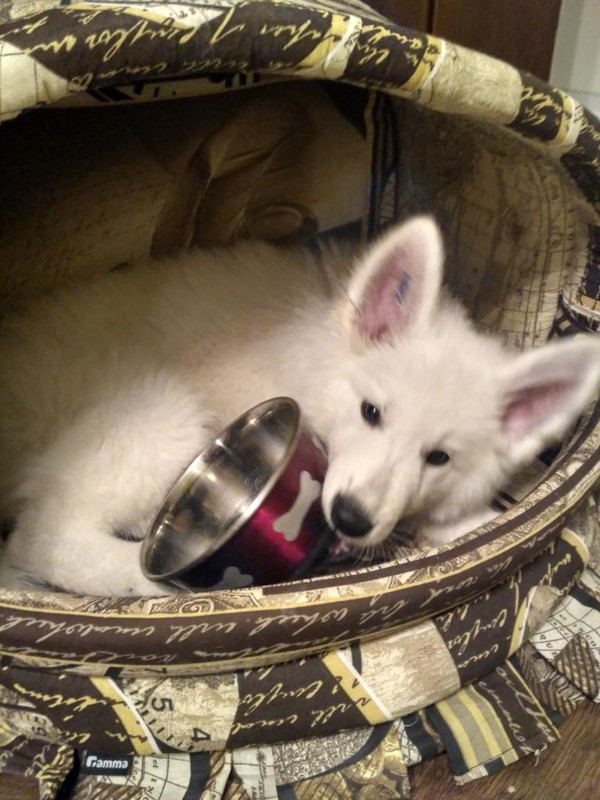 "Подлежал" кошку. Оккупировал кошкин домик, не только во младенчестве любил его, но и вырос когда- только сверху