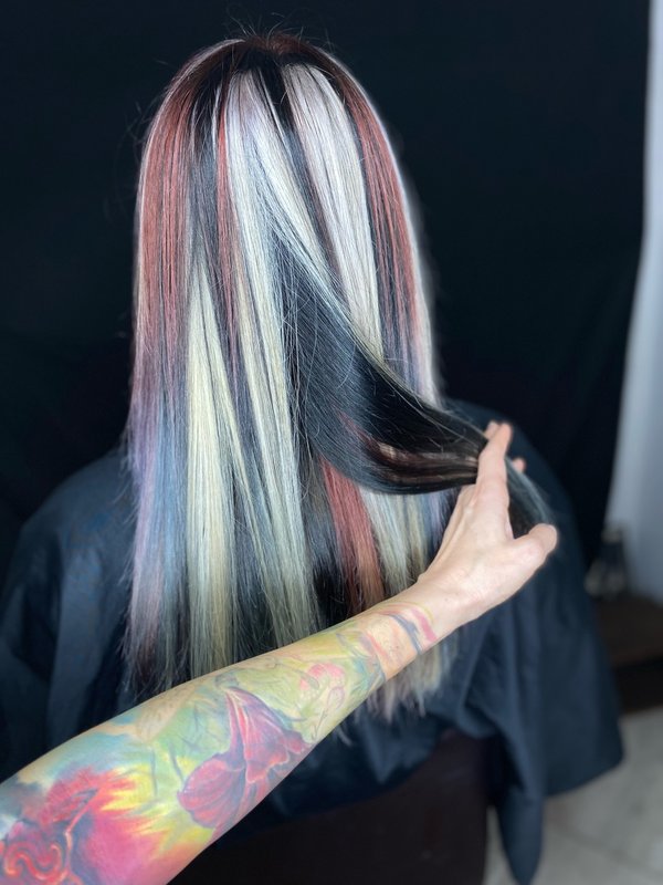 Нет. Это очень дорогой вариант. Сначала смывать то, что есть. Потом тонировать. Потом уже в технике мелирования делать это многоцветье.
