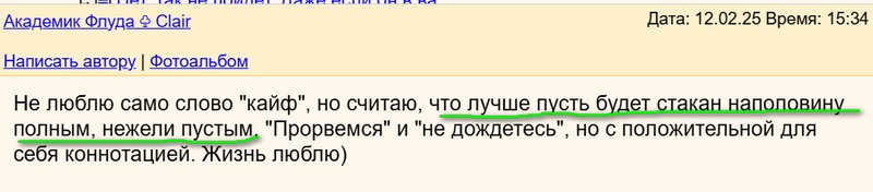 Да при чем тут это... опять вы упрощаете. Конечно, каждый справляеся как может. Есть "настроение в моменте", есть резкие и недолгие эмоции - сильная радость, сильное страдание -, есть общий фон. Как я понимаю, те, кто говорит, что "кайфа нет" или давно не испытывали острых резких положительных эмоций, или в целом ощущают общий фон как негативный. Или и то, и другое вместе.