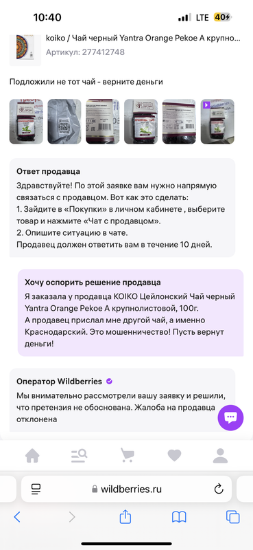 Прямо стало очень интересно, зачем на Вб заказывать чай. По теме могу только посоветовать не пользоваться ВБ. Не понимаю, почему люди жить без него не могут.