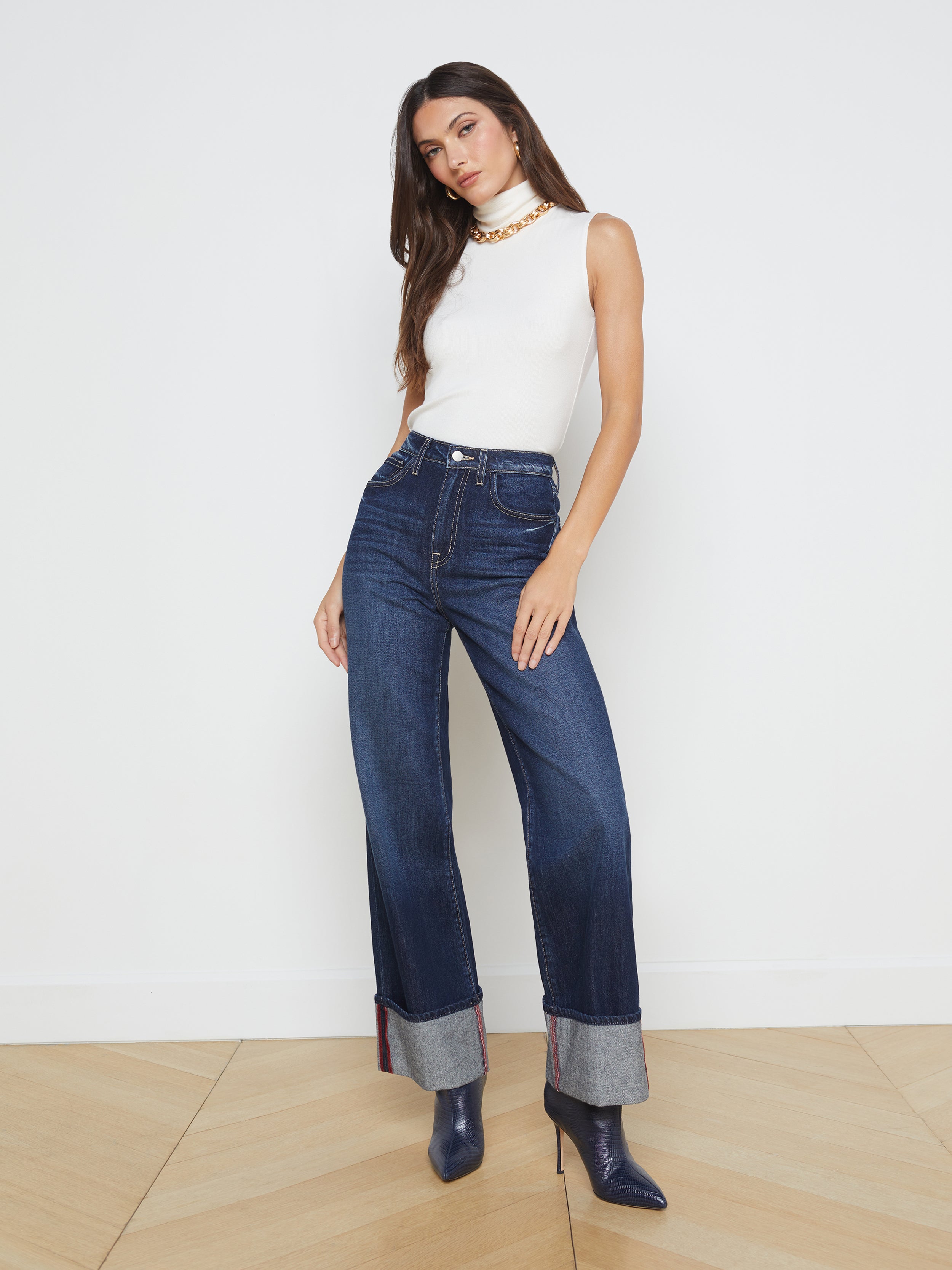 Сейчас я чаще всего одеваюсь, как удобно, чтобы в сапоги вошли, ботинки. С собакой удобно гулять. В офис не езжу с 20 года. Так, иногда, на проверку материалов.