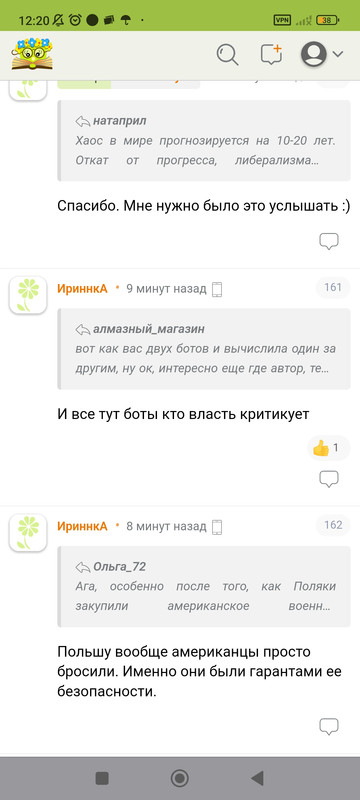 Аноним вне вашей матрицы, где вы манипулируете массами используя прием "вы же хорошие". Не работает он на всех. На мне не работает. Я живу логикой, а не эмоциями. И мне внешнее одобрение не нужно. Тем более от вас. Какой мне профит от того, что вы будете меня называть доброй? А? Назовите мне хоть один. А вот массу минусов я вам могу перечислить. И да, вы же "боги, спустившиеся с небес, еще великие и бесстрашные"? Вот вас и развели как лохов. А мне, как вам, почесывания за ушком не нужны для поднятия ЧСВ.
