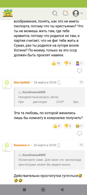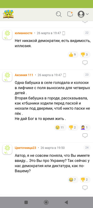 Вы про ту, что здесь слезливые истории все время поднимает и которой вы поддакиваете? Она - вполне вероятно. Человек, который отвечвет честно и на которого вы катите бочку - точно нет. Потому что этот человек я. И я точно с вашим КС никаких связей не имею. Зато вы обе плакальщицы очень туда вхожи. Прямо сразу метнулись туда бодрыми огурчиками посмотреть.