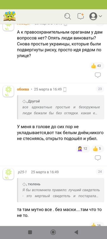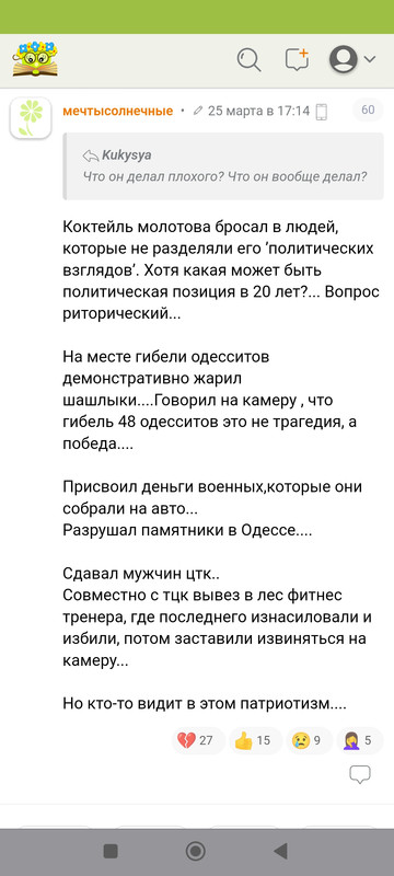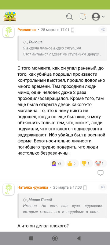 А я да, имею свою семейную историю общения с бандеровцами. И то, что люди, выбравшие эту иделогию, не имеют ничего человеческого, в курсе.