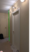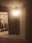 У меня нет красивой фотки с этим радиусом сейчас, вот старая фотка времени монтажа стен. Я прям далеко не уверена, что надо ее выравнивать по коридору, а не по дочкиной