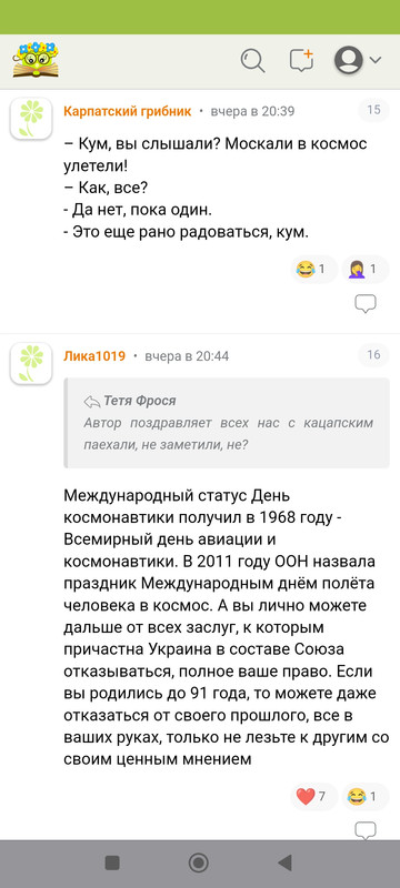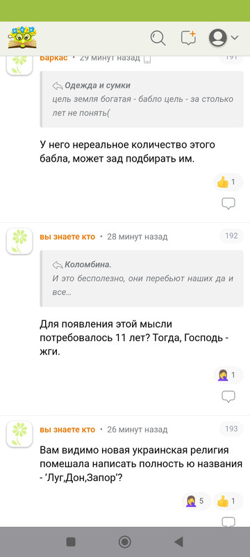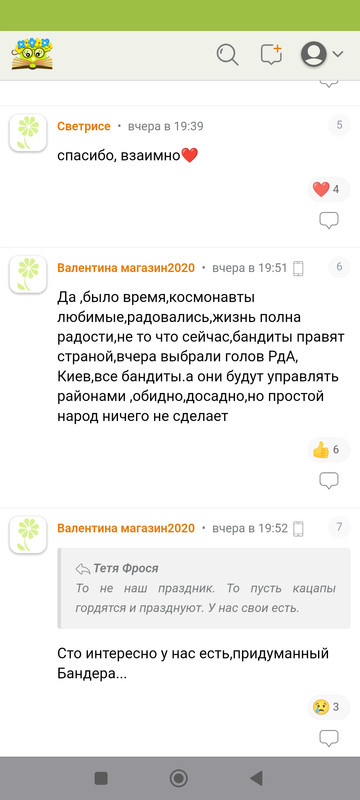 "Еду в автобусе. Народа не очень много, но все расселись по одному (у нас так принято). Заходят 2 украинки и начинают орать "Смотри, бараны как расселись! Вот сволочи, уроды. Нам придётся сесть отдельно" (с)