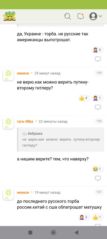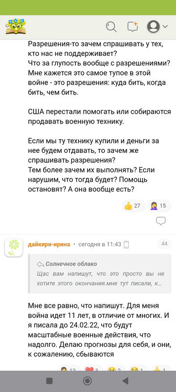 Сегодня с моим бывшим военным говорила. Он уволился иа армии. В 2022 он не стал меня слушать, когда я говорила, что там на самом деле. А теперь полностью за Россию. Говорит, что рванёт из Финляндии сразу, как только начнётся здесь, в Азию собрался, эстонцев крыл.