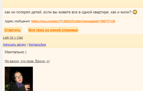 Ну, меня само намерение, помнится, очень оттолкнуло от той женщины. Хотя изначально я при разводе была на ее стороне. Всегда жалею женщин, которых бросают с маленькими детьми за ради феи...