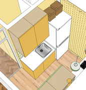 А холодильник не будет в него открываться? Или там мелочевка будет? Плиту не думали горизонтально сделать, чтоб за ней больше техники разместить (за счет увеличения расстояния от плиты до окна)? Хотя тогда зона готовки меньше станет