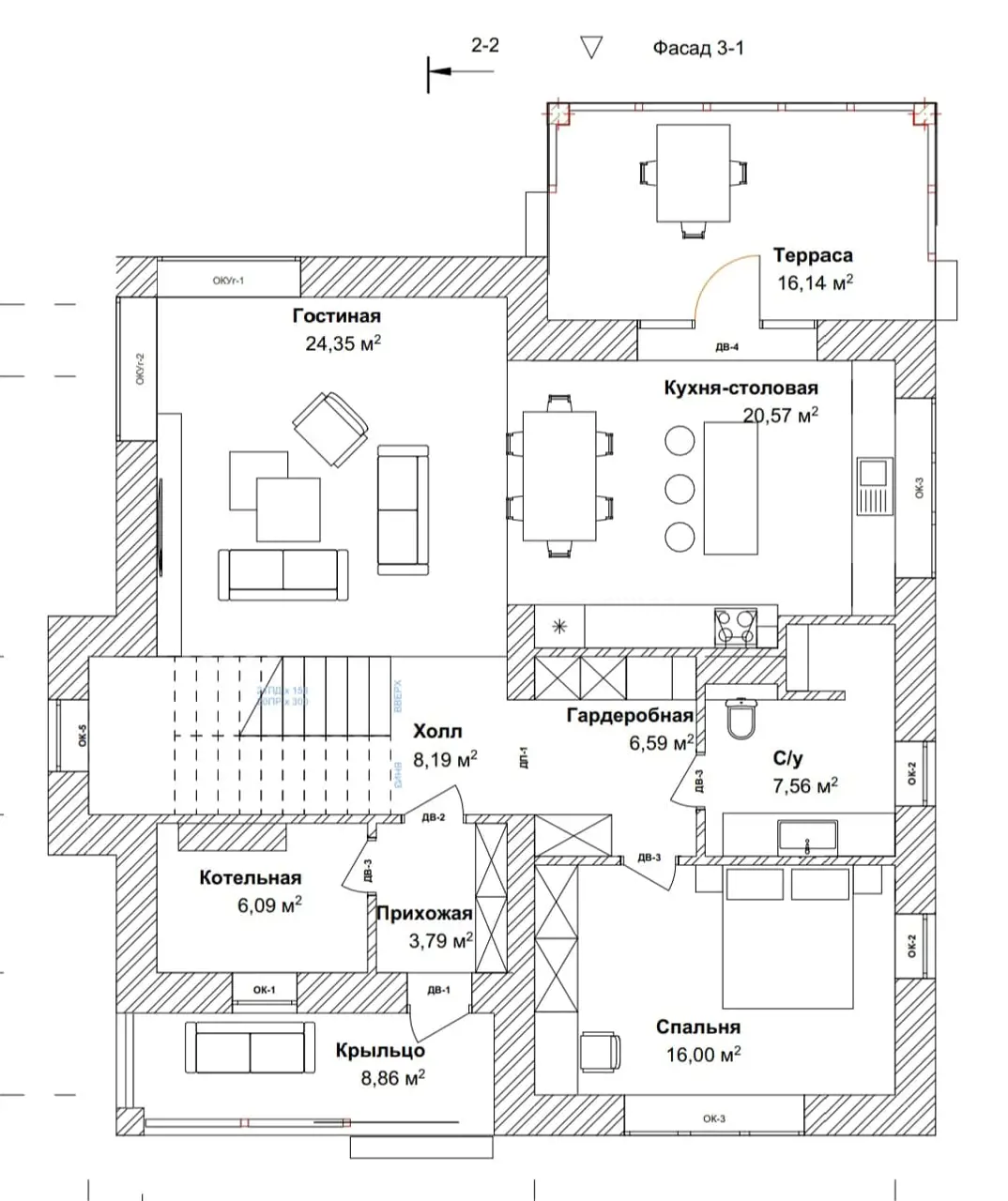 И еще я никак не могу понять, почему имея фору в виде отсутствия несущих стен, вы снесли все стены и при этом спланировали помещение так, что вам в спальню надо через гардеробную идти.