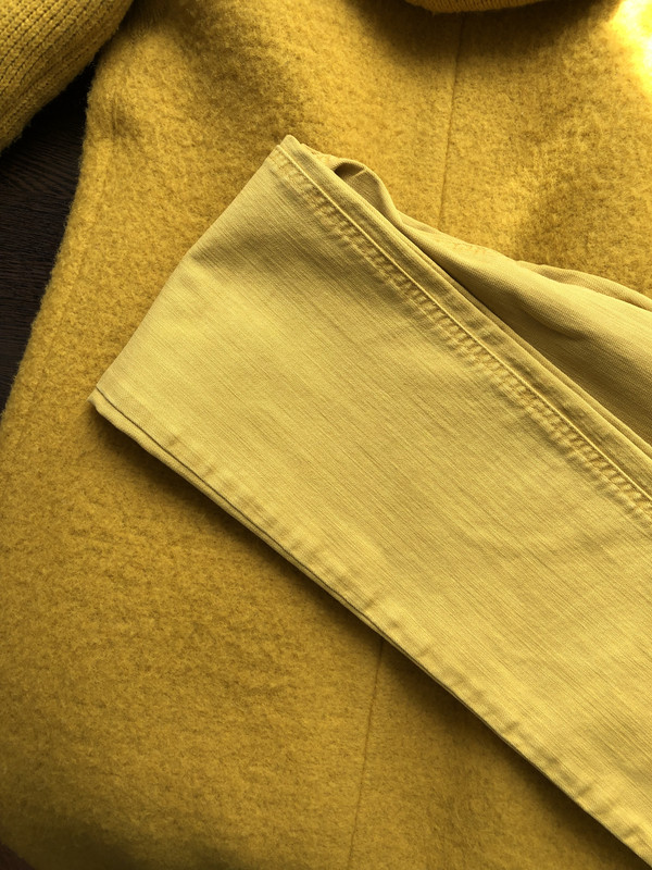 Горчичные джинсы точно теплый тон, каким бы ни был мой монитор. Это 100% теплый, поэтому и спросила какой оттенок у куртки, женится или нет.
