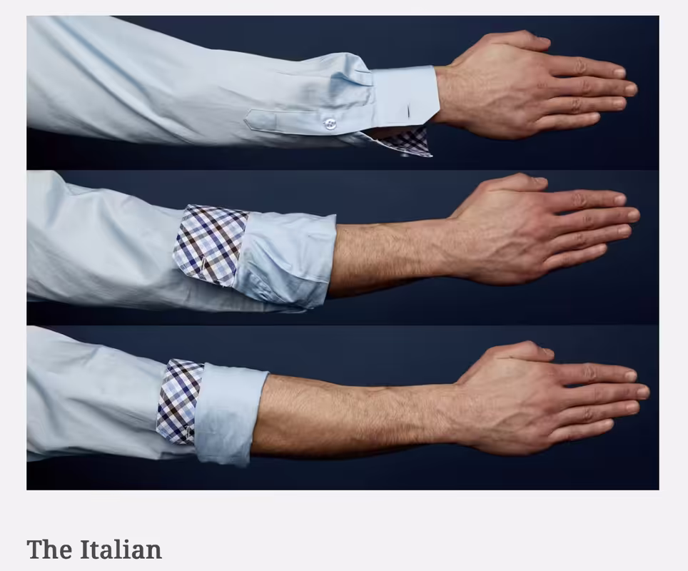 У конкретно этой рубашки, судя по фото, еще и ткань сама плотная похожая на джинсовую куртку, и длина очень длинная какая-то. Подвернув именно эту рубашку в рукавах, вы окажетесь как в недоплатье каком-то, перетуника.