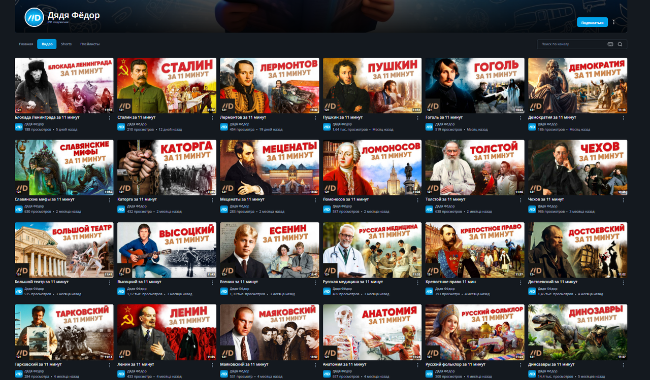 К празднику наш новый детский канал Дядя Федор подготовил подборку коротких роликов про русских писателей.