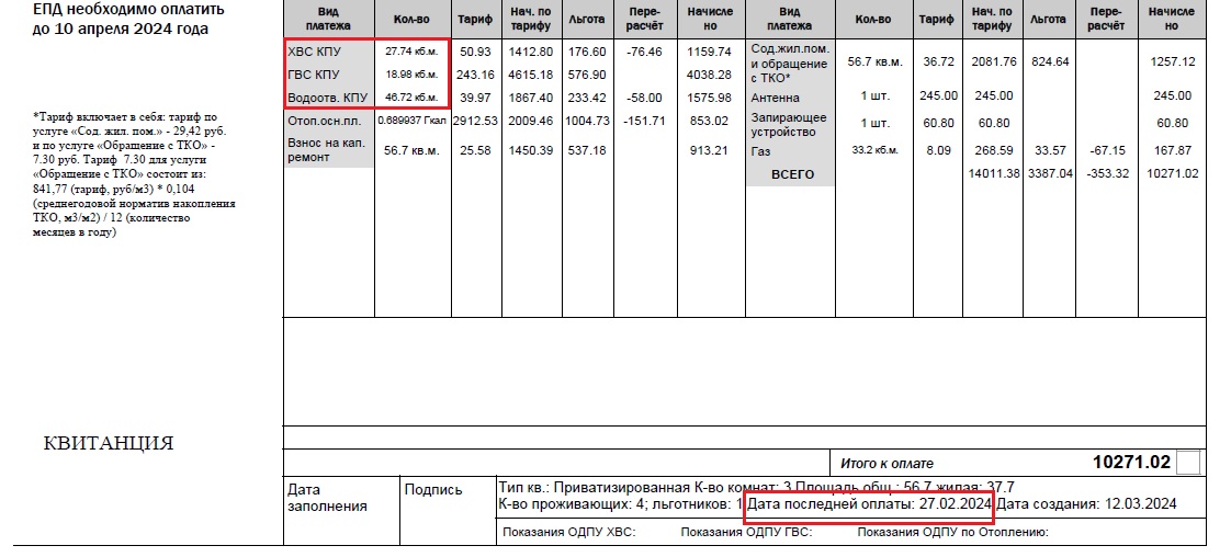 квитанции покажите - с нулевыми данными, со средними, и так далее