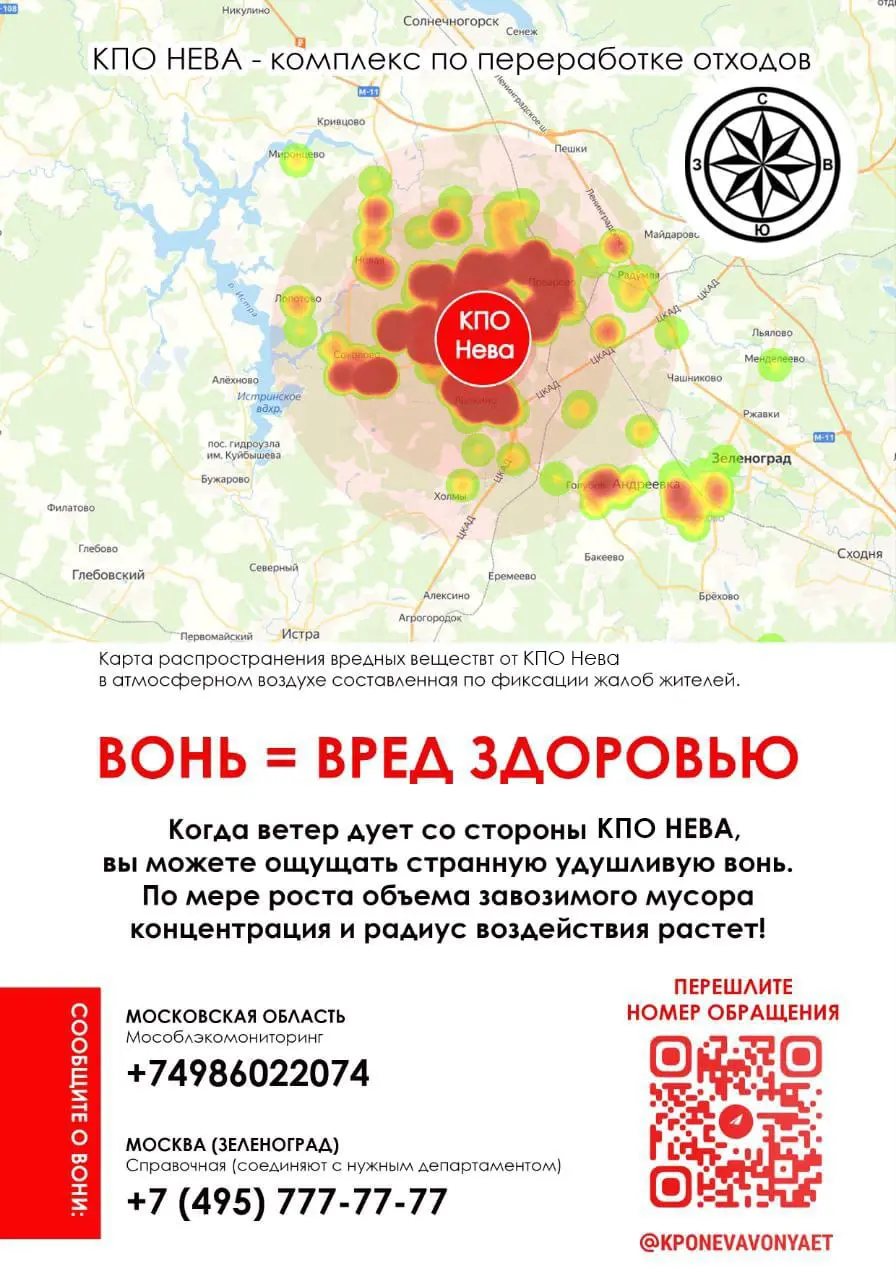 КПО «Нева» отравляет жителей Зеленограда, Поварово и близлежащих населенных пунктов запахами газов. По словам местных, дышать — просто невозможно. А все из-за отходов, которые «сваливают» в чашу захоронения без сортировки.