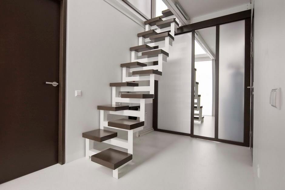 Интересная мысль. В смысле - пролет более высокий с меньшим футпринтом? Может быть. Но называется witch stairs.