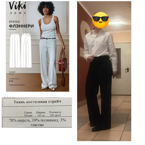 А во-вторых - каблук и неконтрастный цвет под длинными клешами сильно удлиннит ноги.