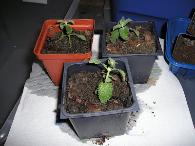 Вчера укореняла катминт: мне нужно штук 20, чтобы сделать бордер на большую клумбу, но природная жадность не позволила купить 20 штук по $4 за штуку... поэтому я купила 2, каждую распотрошила на десяток частей и каждый побег засунула в вазончики укореняться... если укоренится - должно получиться ровно 23 растения.