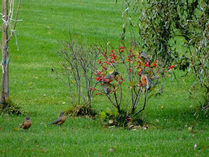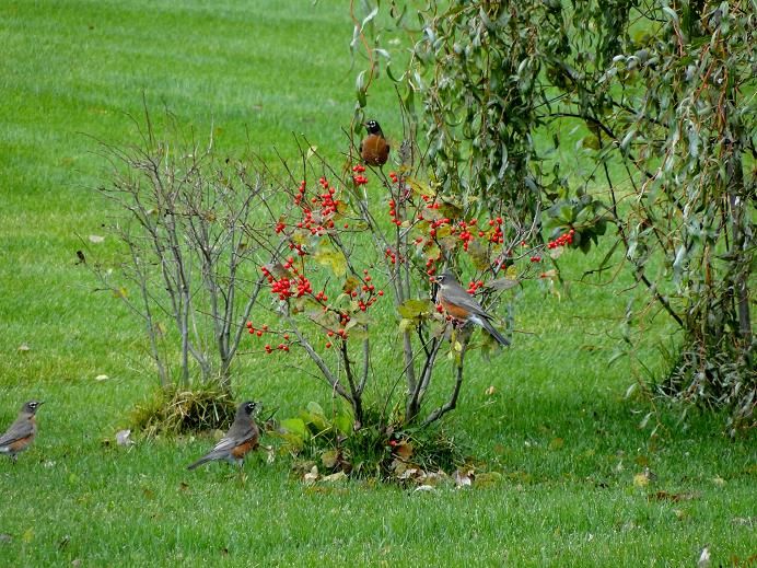 Дрозды атакуют!Они сжирают мои winterberry - они ж мне всю красоту сожрут! По идее, winterberry несьедобны для птиц до весны - только после зимних морозов и оттпелей они должны стать пригодными для птиц, а тут... а я ж расчитывала, что мои красные ягодки будут всю зиму на снегу сиять....