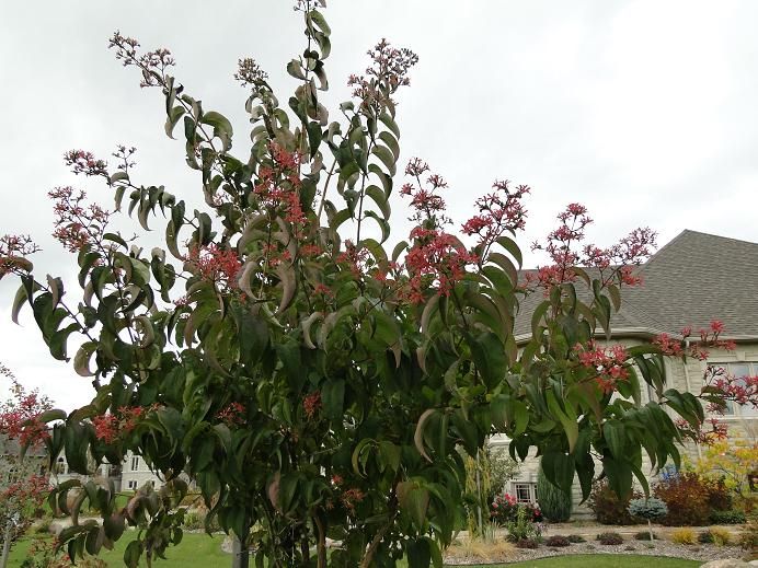 Терра, смотри на мое дерево Seven-son flower. Оно-таки покрылось розовыми "псевдоцветочками" на зиму глядя